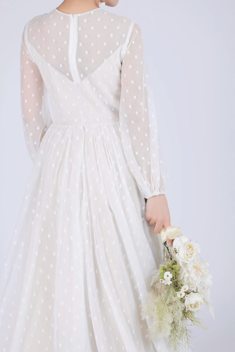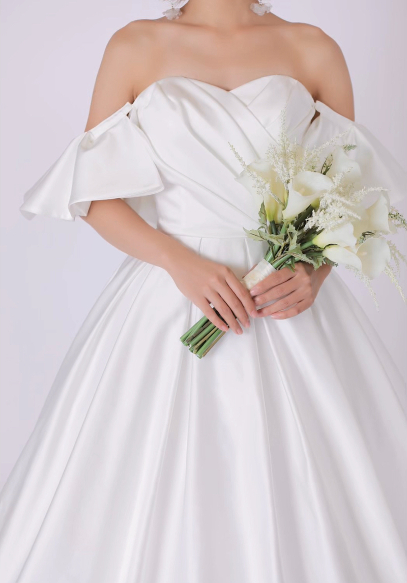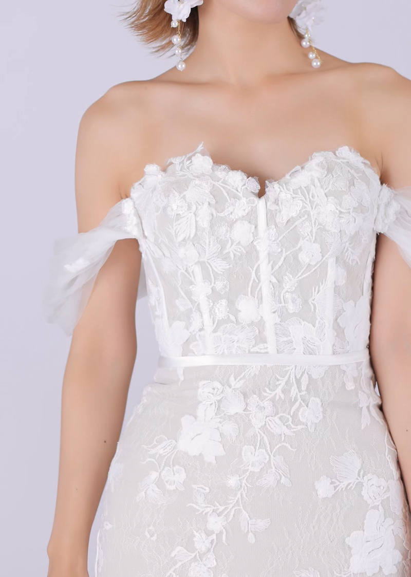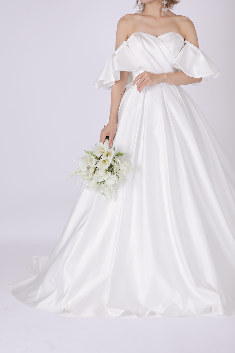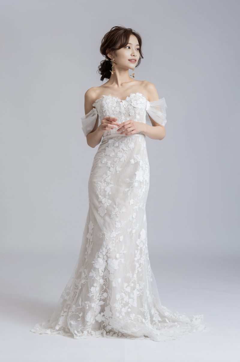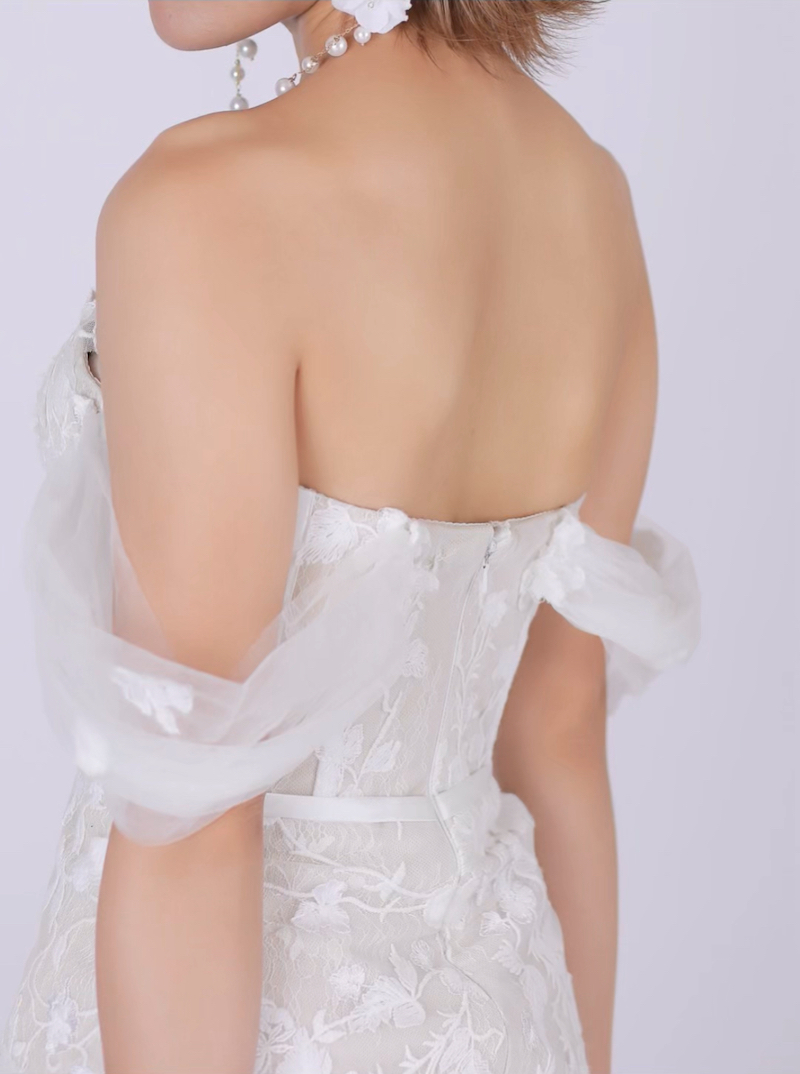 こちらはお客様人気も高く、オフショルのスリーブは取り外しが可能です!