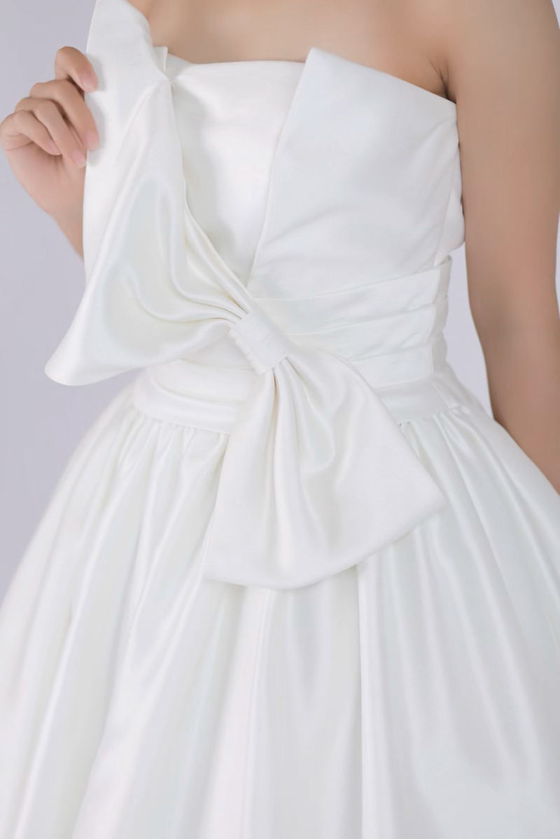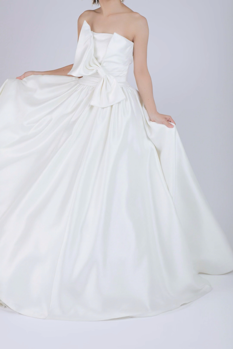 胸元の大きなリボンにインパクトがありますが、その分他に柄は無く、生地もシンプルで重厚感があります。