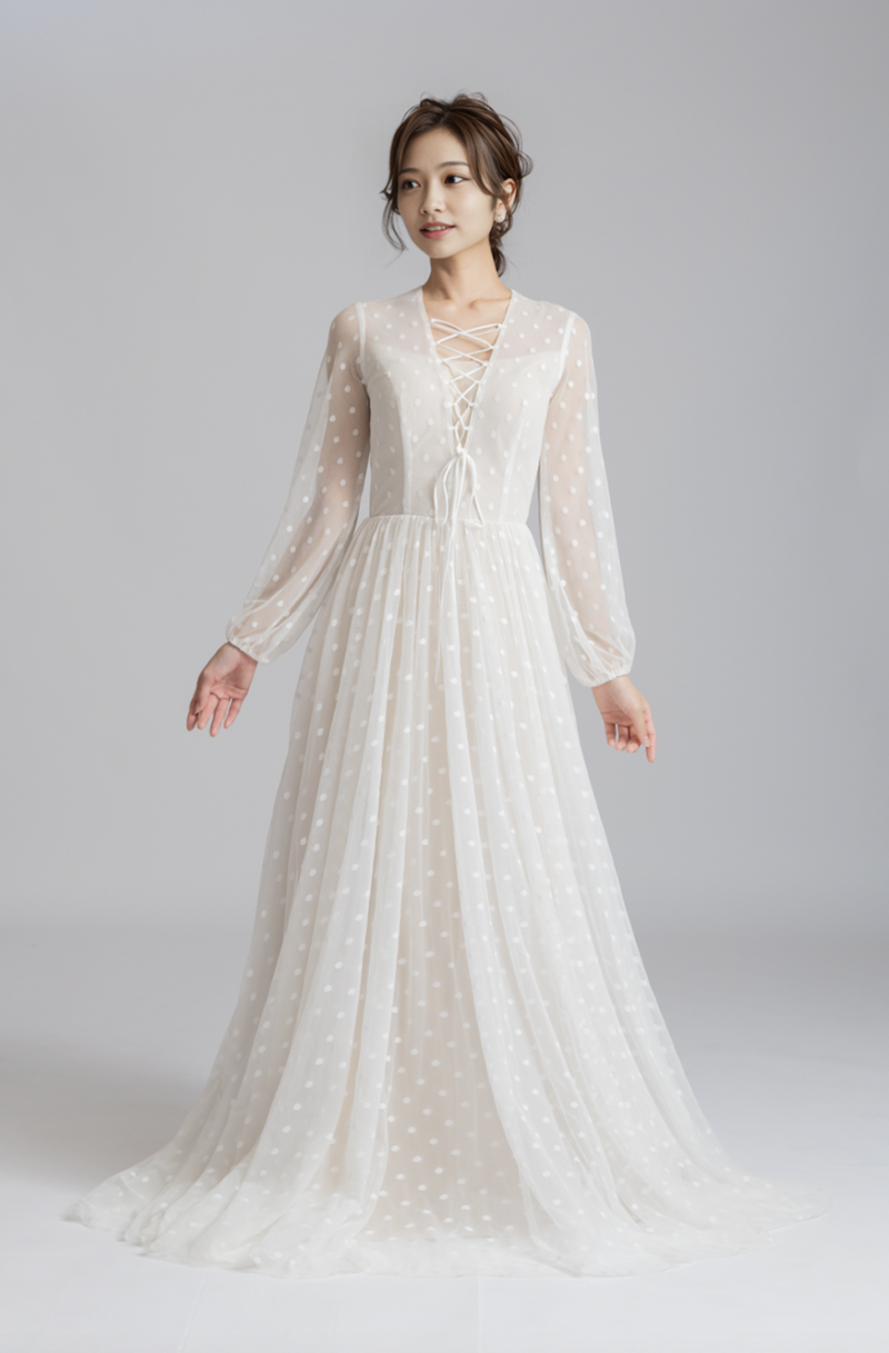 ナチュラルで肩の力を抜いたお写真を撮りたいお嫁様にはピッタリのドレスです。