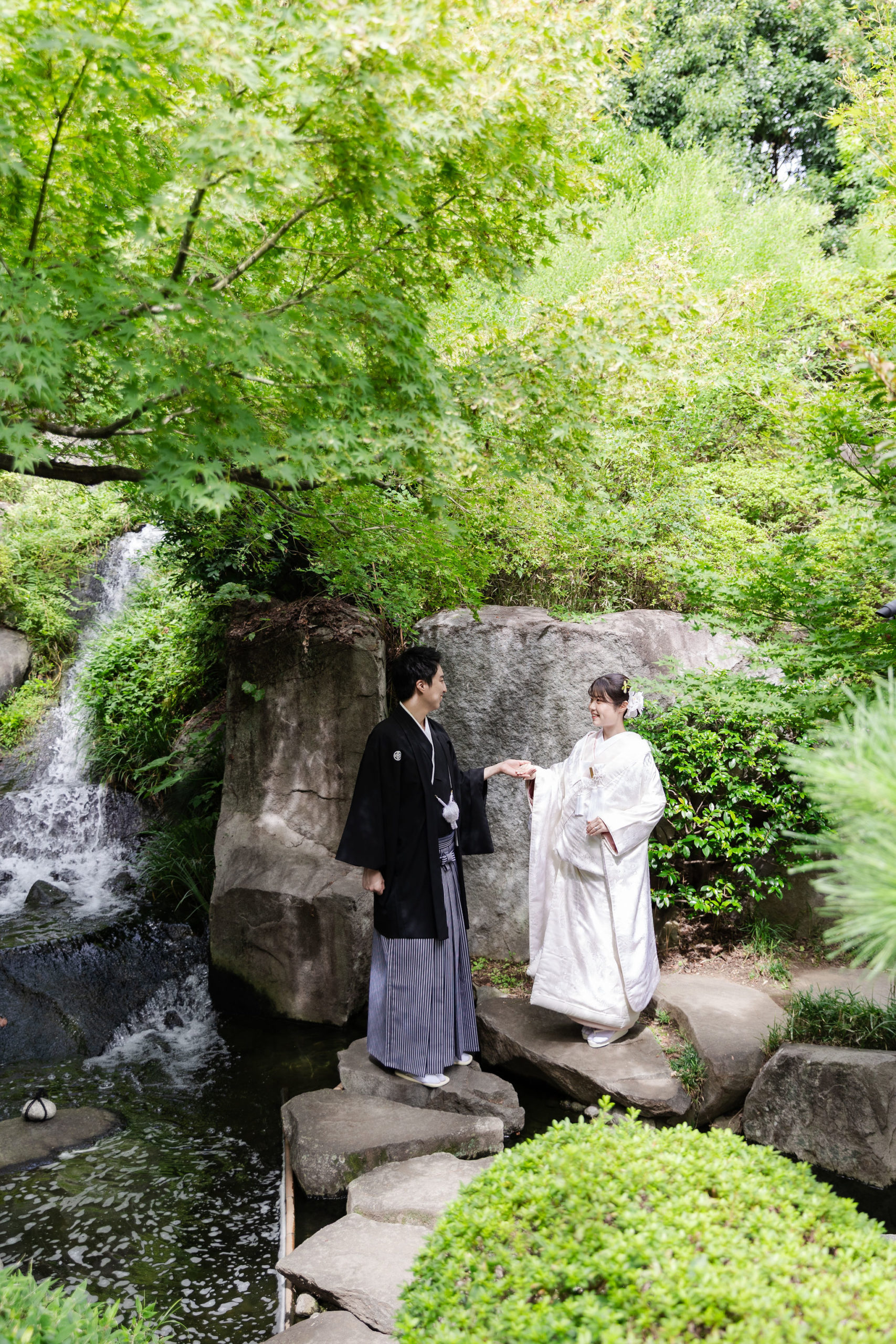 ですが、和装撮影を検討している多くの新郎新婦様は「 庭園で撮りたい .. !」「 お茶室でも撮りたい .. 」と希望されます!(一生に一度なので、その希望は叶えてあげたい .. )