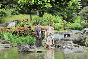 東京スカイツリーが近くにあるため、庭園越しにタワーを望むこともできます。